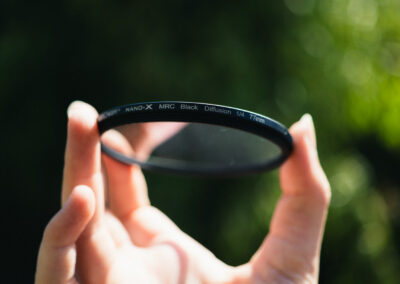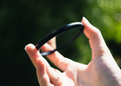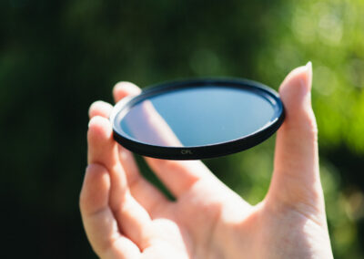 My filters are stored in a WANDRD filter pouch, I have two which respectively hold my ‘necessary’ and ‘creative’ filters. Most of my filters are by sustainable brand Urth who focus on conscious design and reforestation programs. I do have a few filters from different brands like Rawster and K&F, from which I mostly have protection filters for lenses. All of the creative & necessary filters I have are 77mm in diameter, which is the filter size of most lenses I have. The only lenses they don’t fit on are my ultra-long telephoto lens & the nifty fifty. For that last one I’ve found a cost-effective and sustainable solution: a step-down ring which lets me use all of my filters on this lens as well. These step-down rings can be found on Amazon or pretty much any camera-store.