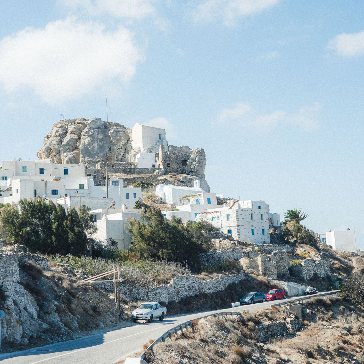 Aegiali is the only 5-star hotel on the entire island Aegialis Hotel & Spa, is has gorgeous views, a pool & spa, and hosts yoga retreats. The nightly rate in the summer is around €380,- but this drops in all the other seasons. Other than this hotel there are plenty of guesthouses, villas, or smaller hotels that can accommodate you across the island with rates ranging from €60,- to €300,- during the summer months. I stayed at Studios Akrogiali in Aegiali and the host came to pick me up at the ferry to transport me up the hill to the accommodation. The place was clean and comfortable and had a little kitchen to cook your own meals.